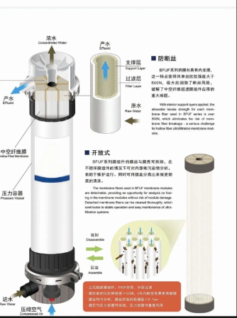 (1) Kunnallisen vesihuollon syväkäsittely: Vesilaitos ottaa käyttöön "tavanomaisen käsittelyn UF" -prosessin, ja tuotetun veden sameus on vakaa <0,05 NTU ja bakteerien kokonaismäärä on <1 CFU/ml